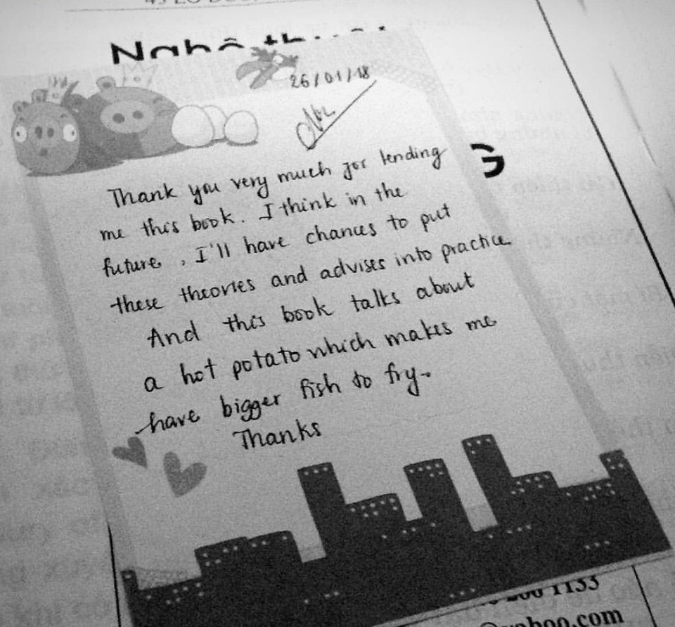 P/s: This note in the picture below is mine. I wrote to say thank you to the boy lending me his book :))))
